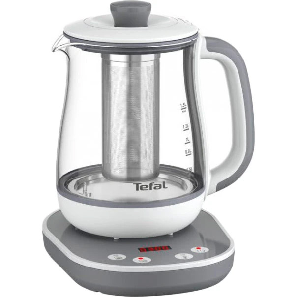 Електрочайник TEFAL Tastea Tea Maker (BJ551B10) поєднує стиль і технологічність. Завдяки елегантному скляному корпусу з білими акцентами він гармонійно впишеться в будь-який інтер’єр. Об’єм 1,5 літра і потужність 1430 Вт забезпечують швидке нагрівання води та дозволяють приготувати напої для всієї родини. Дисковий нагрівальний елемент гарантує рівномірне нагрівання і довговічність у використанні.