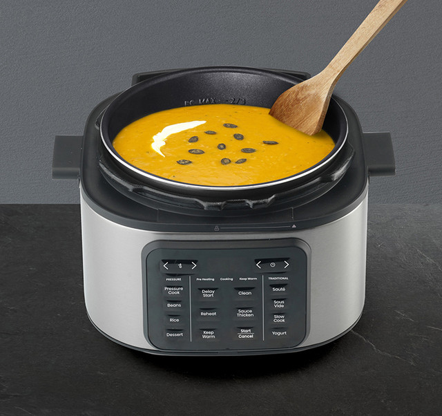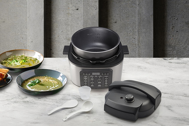 Відкрийте для себе універсальну мультиварку з 10 інтелектуальними програмами, які можна налаштувати під будь-який рецепт. Контролюйте процес приготування за допомогою індикатора прогресу і насолоджуйтеся різноманітністю функцій. Готуйте під тиском, повільно, смажте, готуйте на парі, су-вид або використовуйте спеціальні програми для рису, квасолі, десертів і йогурту – HISENSE об'єднує все, що потрібно на кухні! Він економить простір та дозволить готувати смачні та корисні страви без зайвих зусиль.