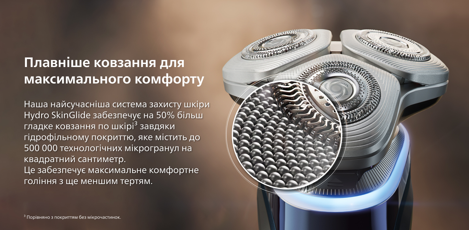 Наша запатентована система гоління потрійної дії Lift & Cut дбайливо підіймає волосинку від самого кореня, забезпечуючи точне зрізання до 0,00 мм від шкіри без її пошкодження для довготривалої гладкості.