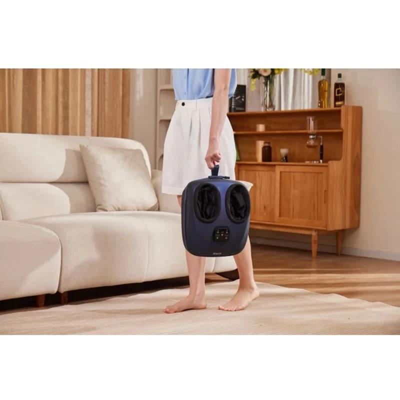 Масажер оснащений рельєфним дном для посиленого впливу на активні точки стопи, працює від вбудованого акумулятора та має пульт дистанційного керування для зручного налаштування режимів. Завдяки вазі лише 2,4 кг пристрій легко переміщувати і зберігати, використовуючи вдома, в офісі або навіть у подорожі.