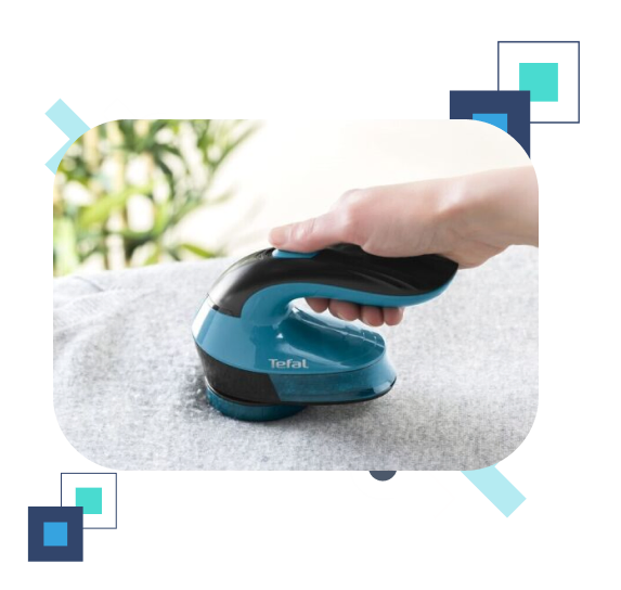 Завдяки ергономічній ручці машинкою зручно користуватися. Вона підходить для всіх типів тканин, включаючи і найделікатніші. Завдяки тому, що Tefal працює від двох стандартних батарейок типу АА, у вас не виникне труднощів при їх заміні. Великий знімний контейнер для сміття легко від'єднується для очищення. Для якіснішого очищення машинка укомплектована спеціальною щіточкою.